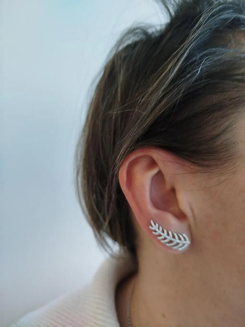 Leaf design climber earrings with cubic zirconia