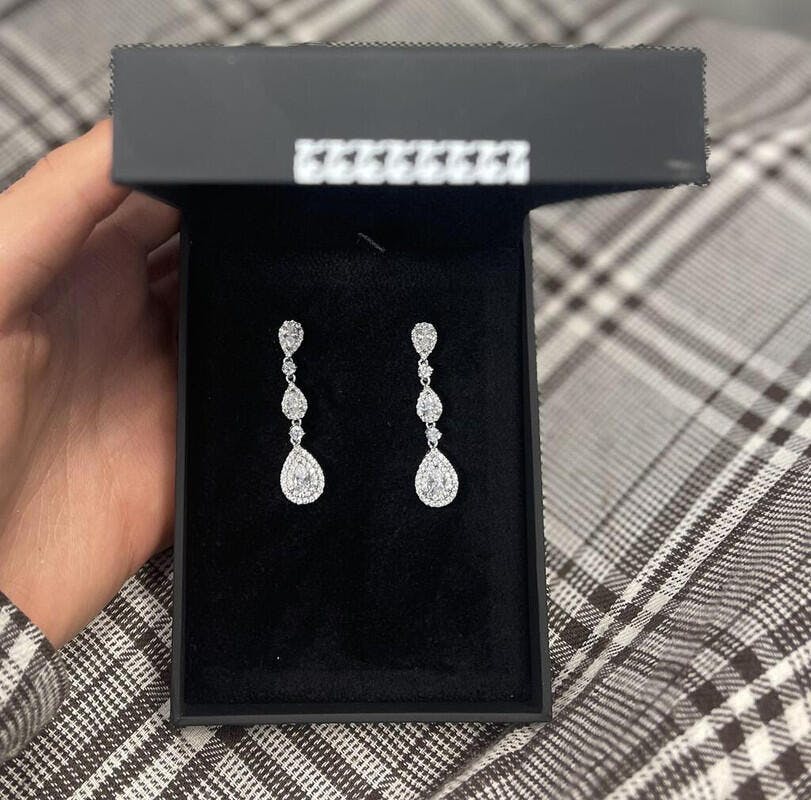 boucles d'oreilles longs mariée de argent en différentes tailles avec zircons