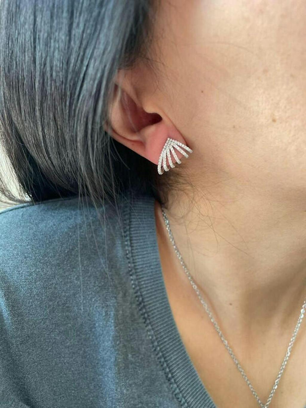 Boucles d'oreilles originales en argent, forme lobe, ornées de zirconiums cubiques