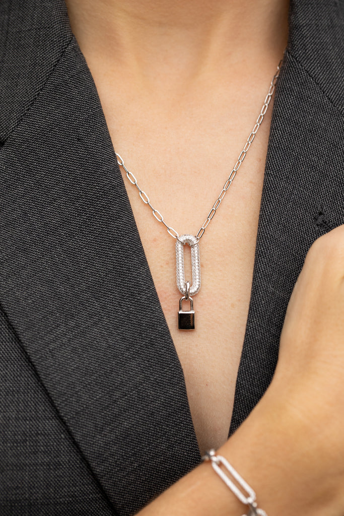 Collar de plata con circonitas motivo candado