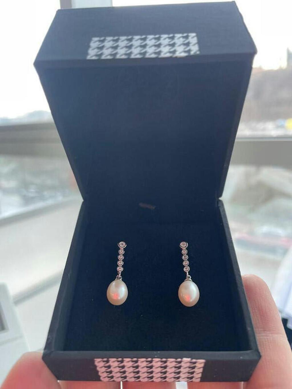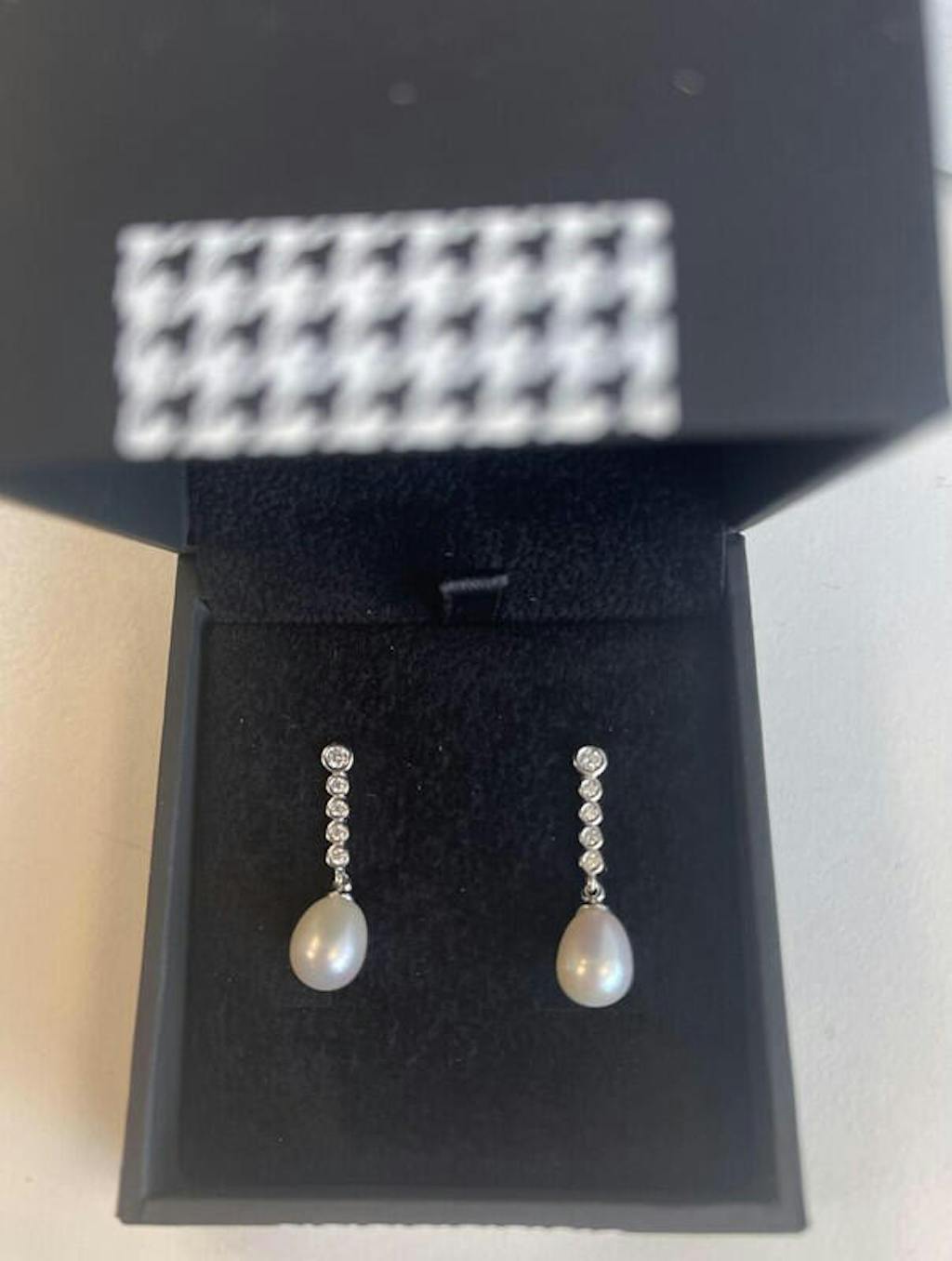 Pendientes de plata perla de agua dulce colgante diseño circonitas con movimiento